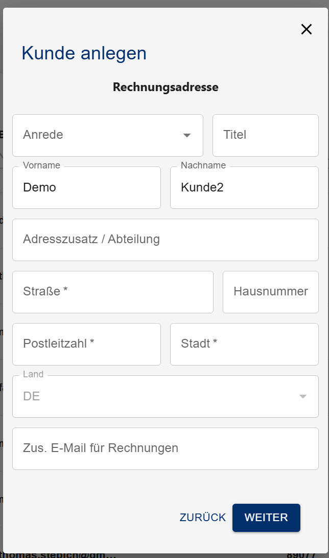 6. Der Kunde wird nach Betätigung der Schaltfläche "Speichern" oder "Überspringen" im System angelegt.