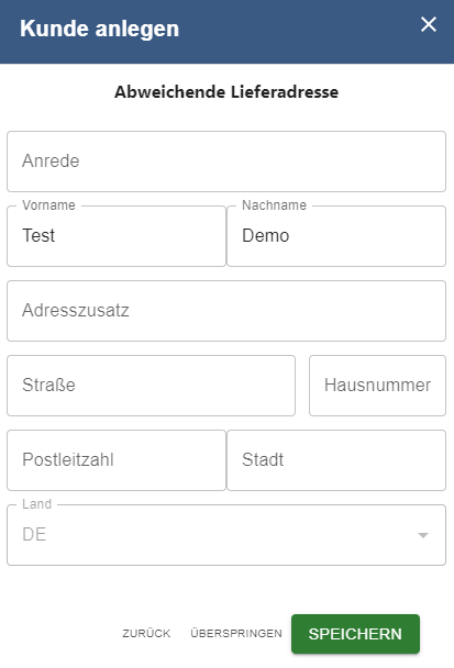 6. Der Kunde wird nach Betätigung der Schaltfläche "Speichern" oder "Überspringen" im System angelegt.