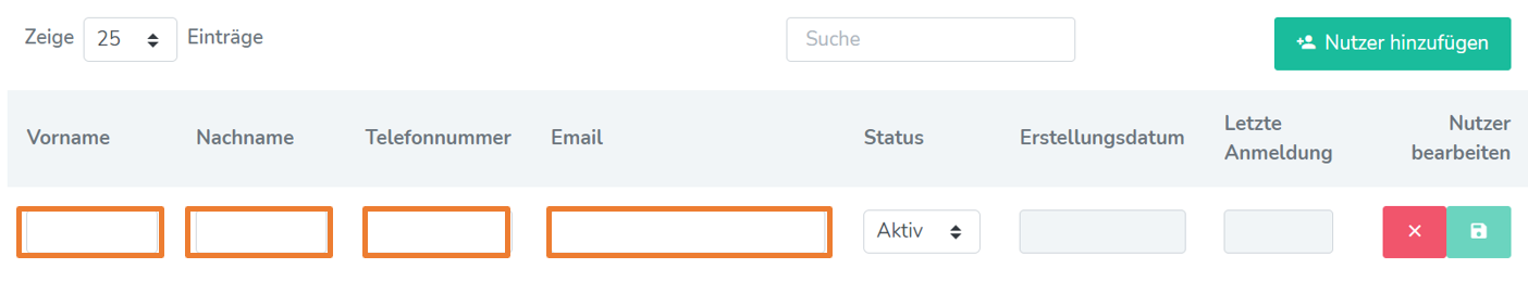 4. Sie können die Aktion abschließen indem Sie den neuen Nutzer durch Klicken auf die grüne Schaltfläche in der selben Zeile abspeichern