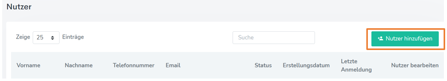 Oberhalb rechts davon klicken Sie nun auf die grüne Schaltfläche "Nutzer hinzufügen".
