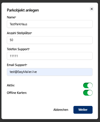 5. Sie landen nun auf die Detailansicht des Parkobjekts.