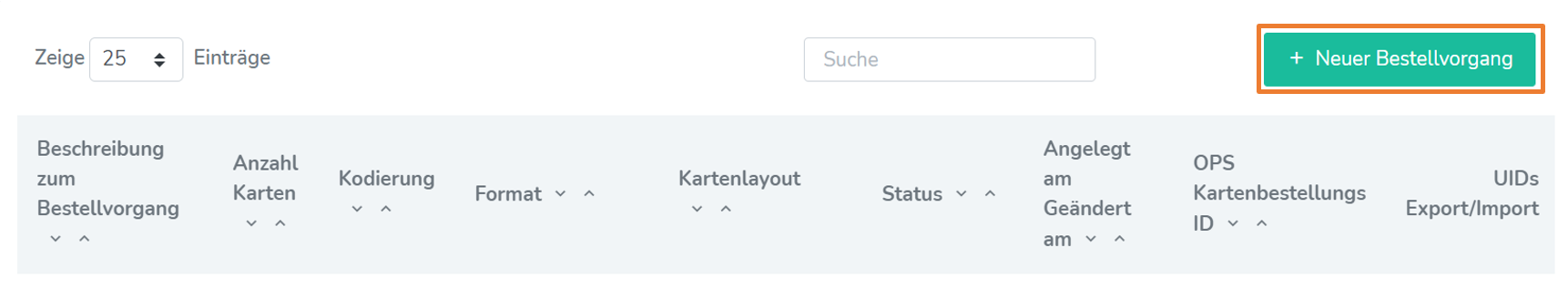 Oben rechts davon ist eine grüne Schaltfläche mit der Beschriftung "Neuer Bestellvorgang", auf die Sie nun klicken müssen.