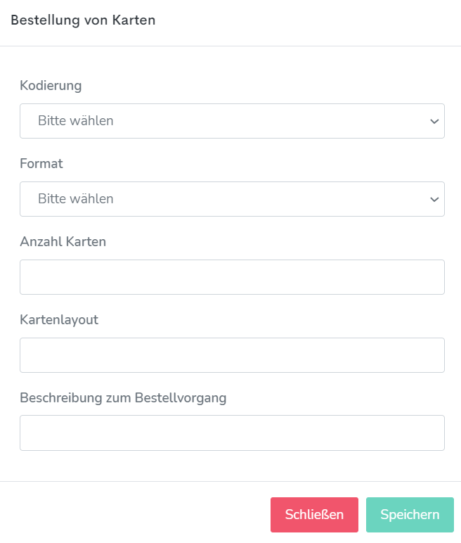 4. Nachdem sie all Ihre Details zu Ihrer RFID-Karten-Bestellung eingegeben haben, können Sie den Vorgang mit der roten Schaltfläche abbrechen oder