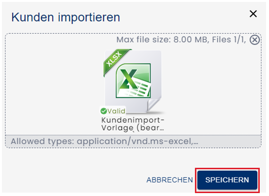 5. Das System verarbeitet die Importdatei, und gibt im Anschluss eine grüne Rückmeldung, wenn der Import erfolgreich war.