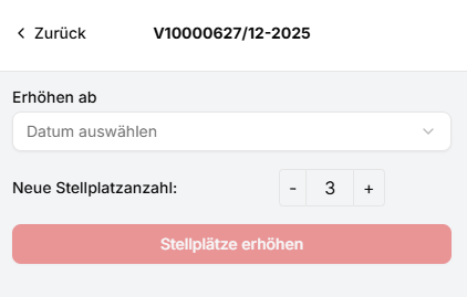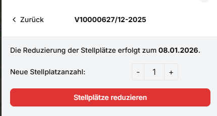 Bei der Reduzierung wird das nächstmögliche Datum angezeigt und die Option, um wie viele Stellplätze reduziert werden soll.