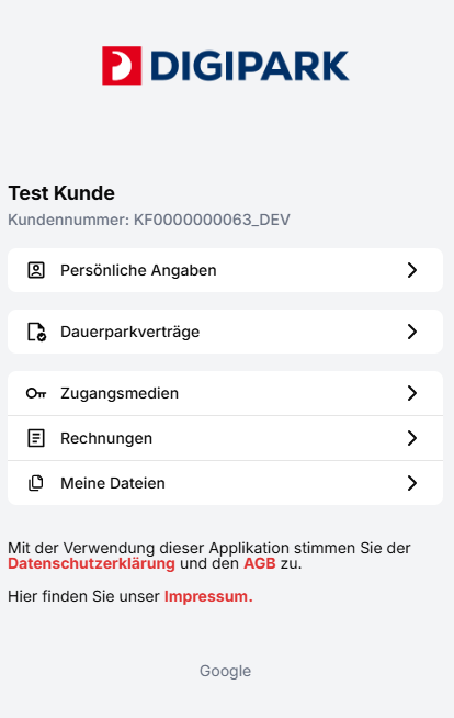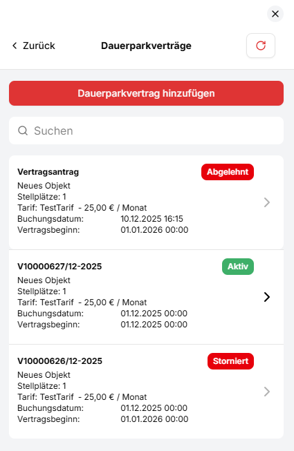2. Gehen Sie in die Vertragsübersicht - Dauerparkverträge.