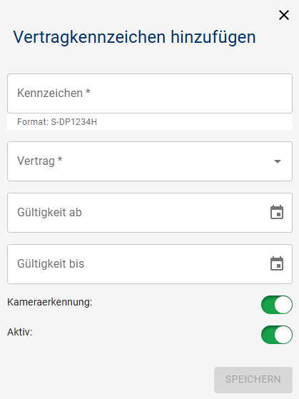 3. Geben Sie bei einem Vertragskennzeichen den Code im richtigen Format an und wählen Sie den gewünschten Vertrag aus. Optional kann das Vertragszugangsmedium auch zeitlich begrenzt werden. Klicken Sie zum Fertigstellen auf Speichern.
